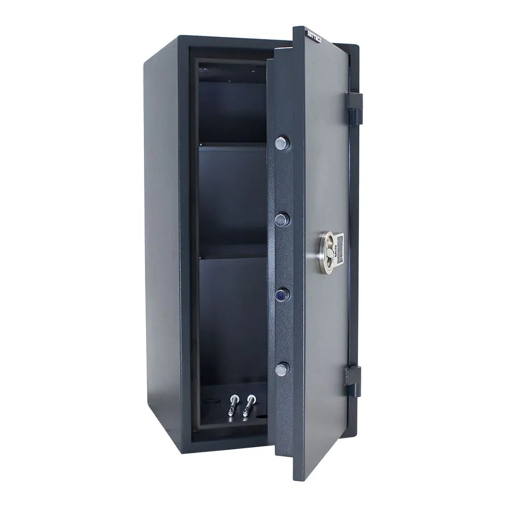 Ihre Dokumente wollen zuverlässigen Schutz gegen Diebstahl, Hitze und Feuer? Dann ist der feuersichere Dokumentenschrank Fire Hero 100 mit Elektronikschloss, der für 8 Ordner Platz bietet, genau der richtige Tresor für Sie! Die massive Bauweise, Klasse 1 PN-EN 1143-1:2012 IMP mit polnischem Zertifikat und 30min Feuerschutz für Papier - das sind die Pluspunkte dieses stabilen Tresors. Die Fachböden lassen sich verstellen, sodass Sie Ihre Wertgegenstände, Sparbücher, Polizzen, Juwelen etc. bequem unterbringen können. Zur Montage verwenden Sie bitte das beiliegende Verankerungsmaterial, das im Lieferumfang enthalten ist.
