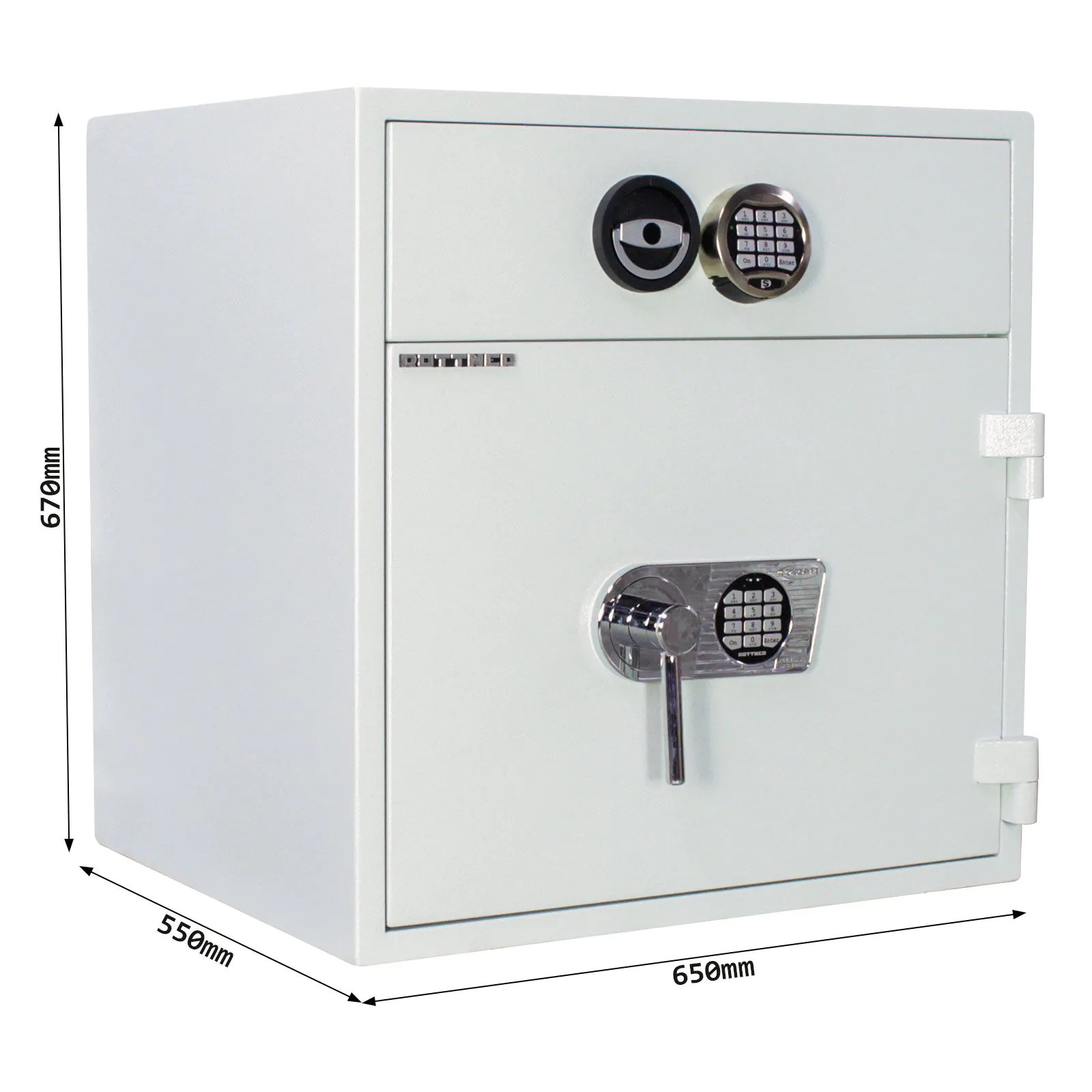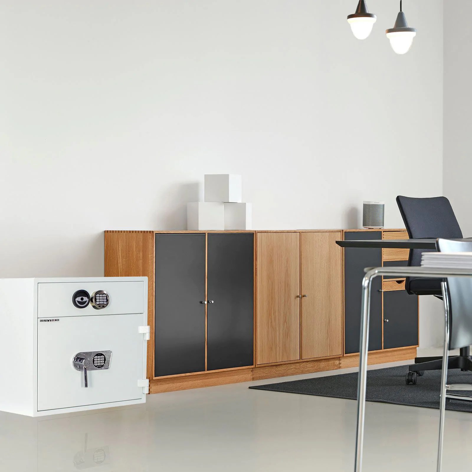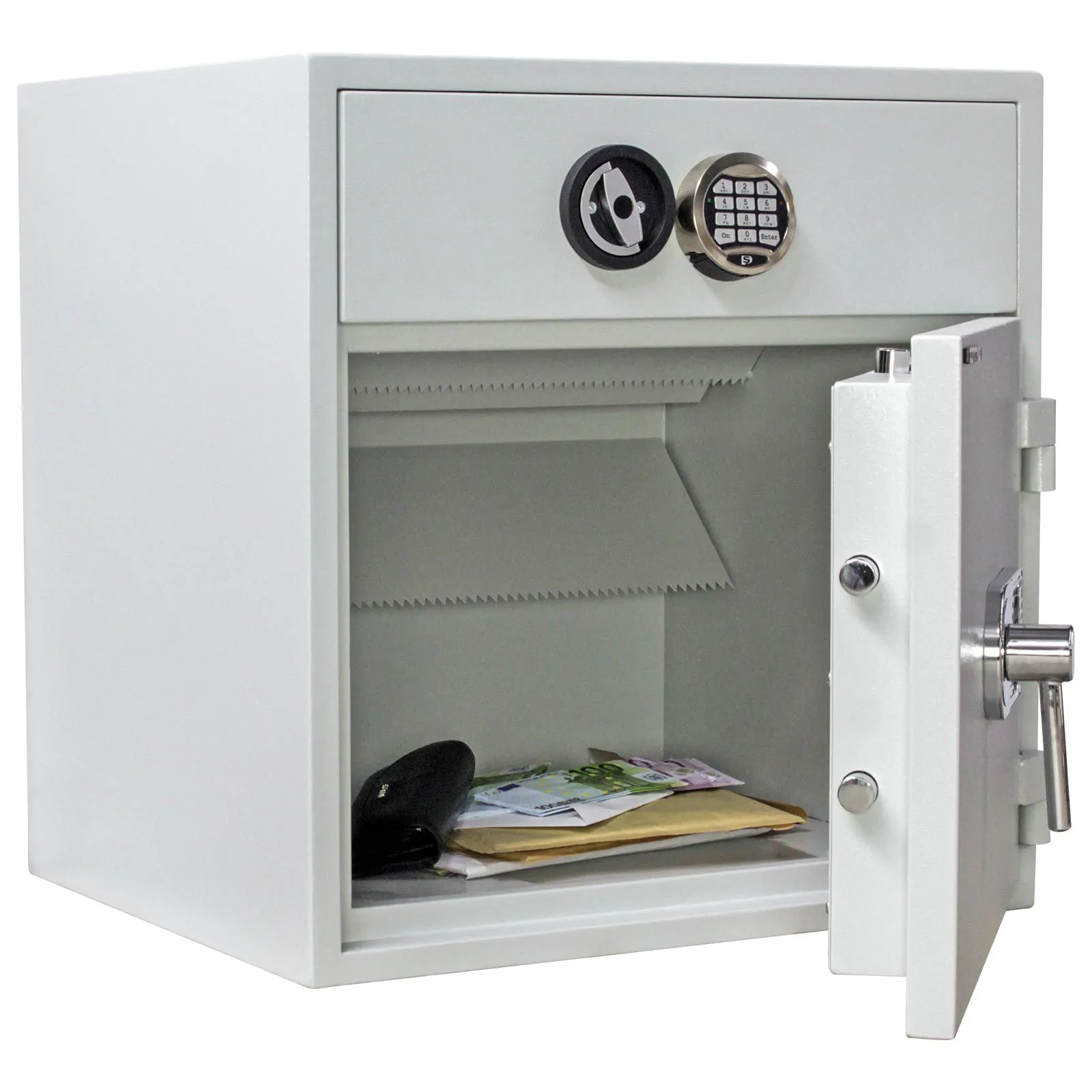 Der Rottner Schubladentresor sorgt für Sicherheit und schützt vor ungewollten Zugriffen. Die Elektronikschlösser sind einfach in der Bedienung und können notbestromt werden. Der Tresor verfügt über eine 3-seitige Bolzenverriegelung und das Schloss ist bohrgeschützt. Die Schublade ist nach vorne ausgerichtet. Eine Bodenbohrung ist bereits durchgebohrt, das Verankerungsmaterial ist im Lieferumfang enthalten.