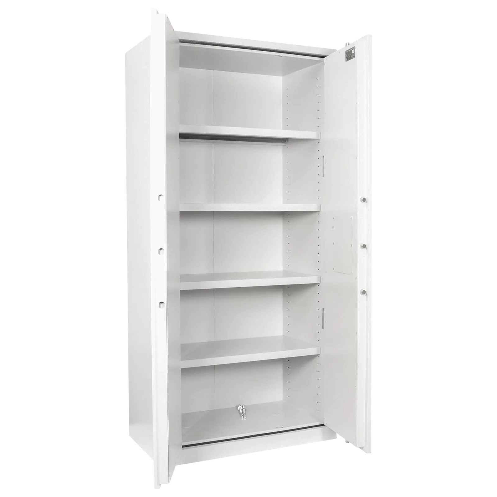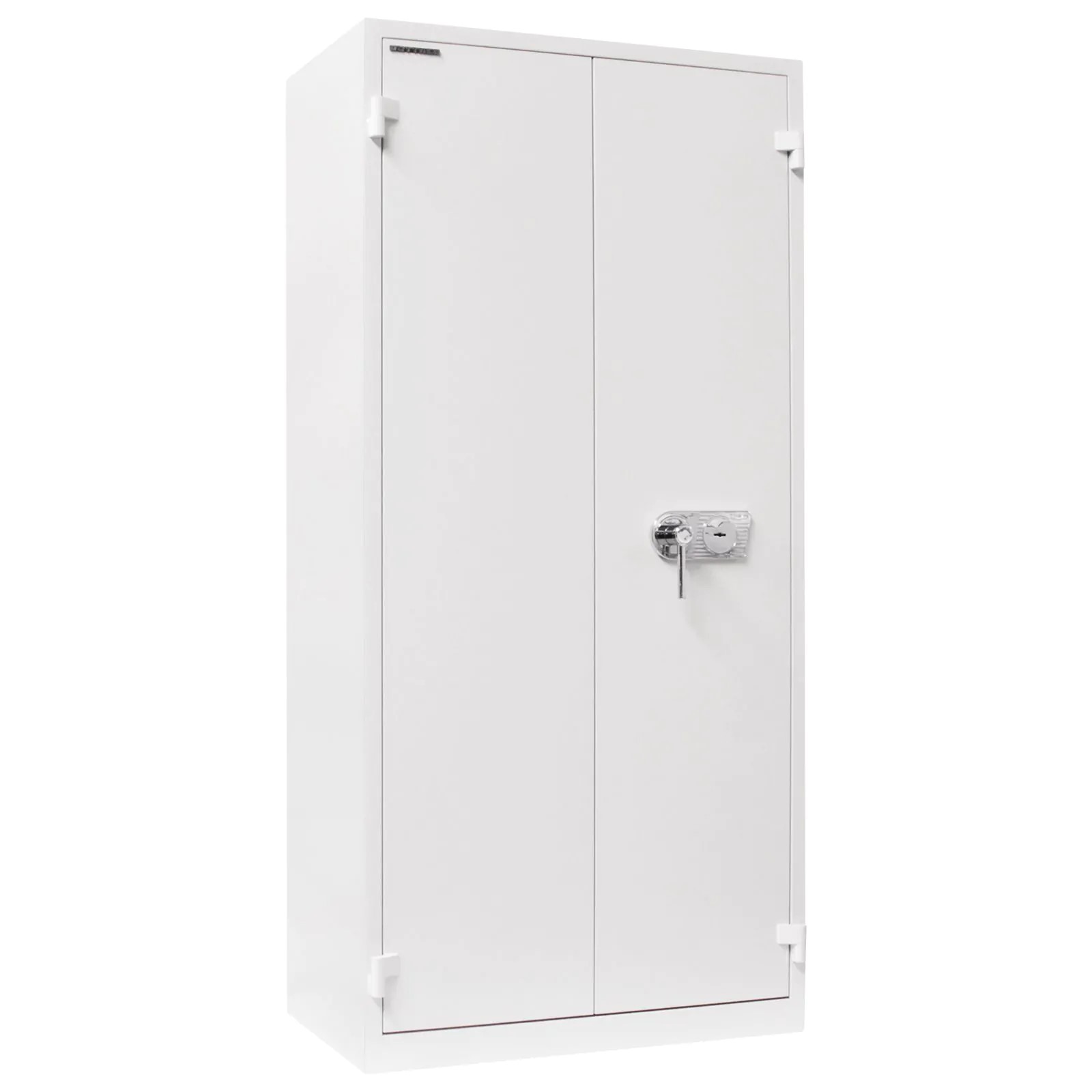 Der Rottner Stahlbüroschrank Office 3 Premium sorgt für Sicherheit und Schutz für Ihre Dokumente, Wertpapiere und Polizzen in Ihrem Büro. Der erstklassige, zeitlose Stahlbüroschrank mit vier Fachböden bietet für bis zu 50 Ordner Platz und schließt mit einem leicht zu bedienenden Doppelbartschloss. Das für die geprüfte Montage benötigte Material finden Sie im Lieferumfang des Tresors vor. Ein Stahlschrank, wie er in keinem Büro fehlen sollte!