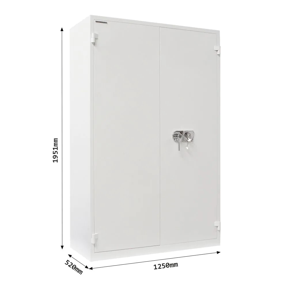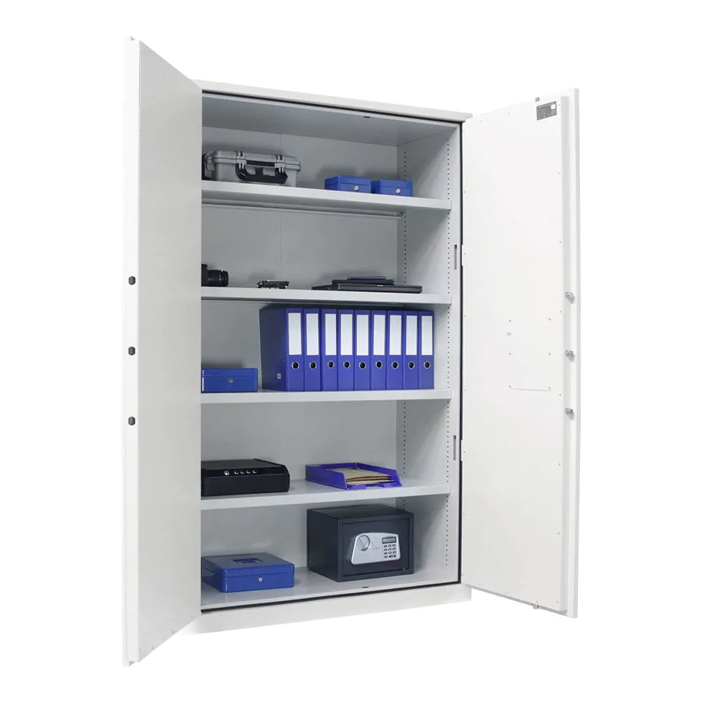 Der Rottner Stahlbüroschrank Office 4 Premium sorgt für Sicherheit und Schutz für Ihre Dokumente, Wertpapiere, Polizzen etc. in Ihrem Büro. Der erstklassige zeitlose Stahlbüroschrank mit vier Fachböden bietet für bis zu 70 Ordner Platz und schließt mit einem leicht zu bedienenden Doppelbartschloss. Das für die geprüfte Montage benötigte Material finden Sie im Lieferumfang des Tresors vor. Ein Stahlschrank, wie er in keinem Büro fehlen sollte!