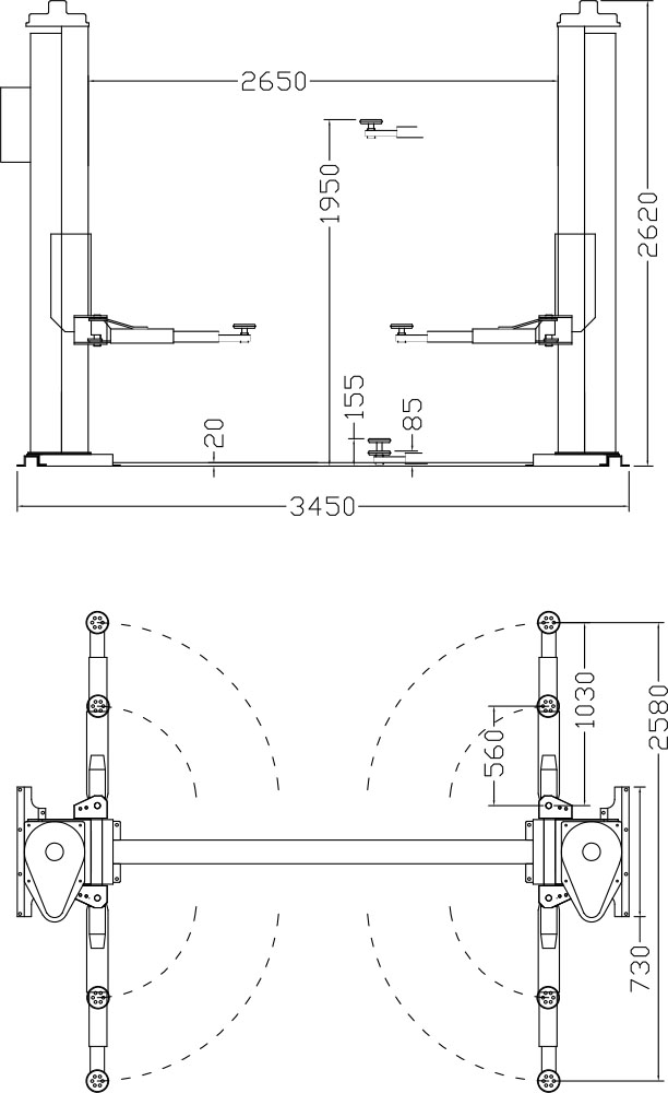 - Die hebebühnen mit unhabängigen säulen sind realisiert um einen vollig freien bereich unter der kraftfahrzeug zu haben